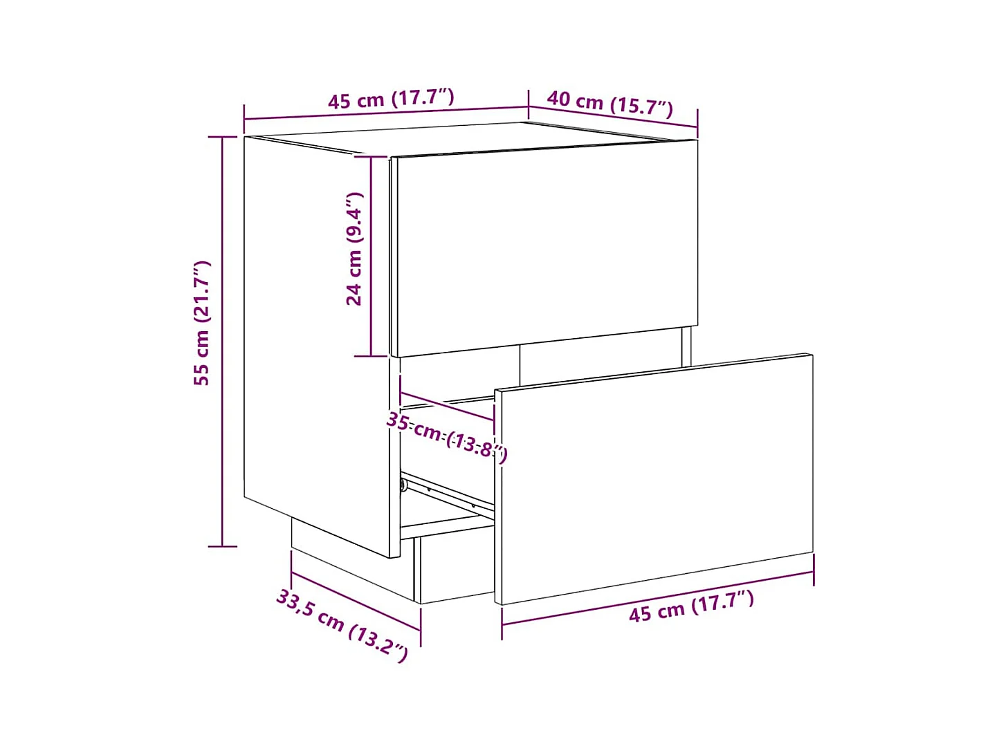 Table de chevet anthracite 34,5x39x44 cm acier