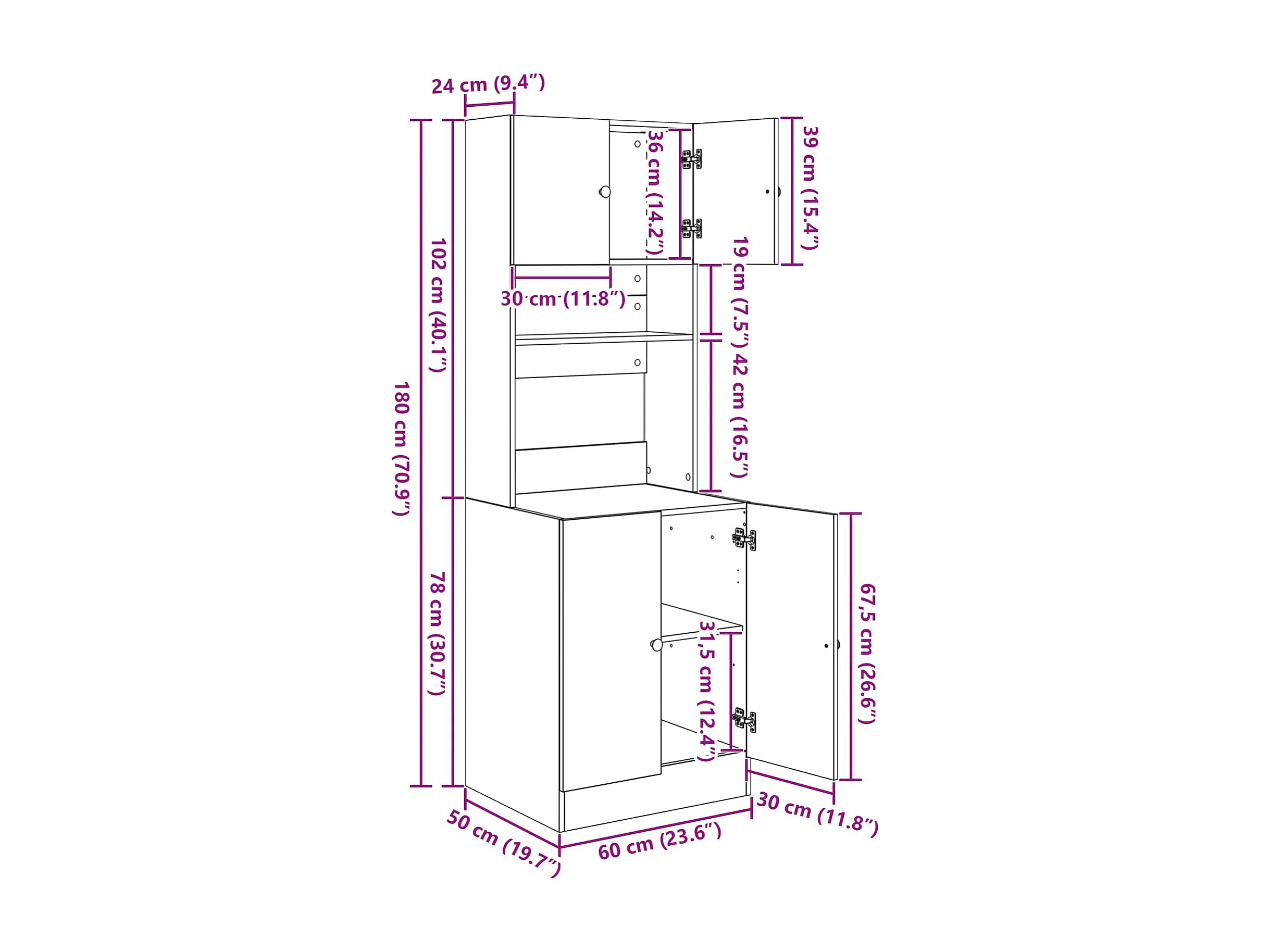 Buffet de cuisine avec porte 2 pcs Chêne noir 60 x 50 x 180 cm