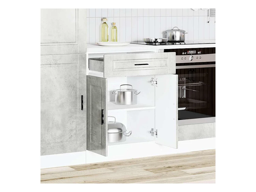 Armoire de cuisine gris béton bois d'ingénierie