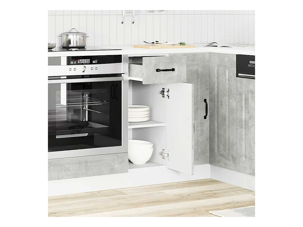 Armoire de cuisine Kalmar gris béton bois d'ingénierie