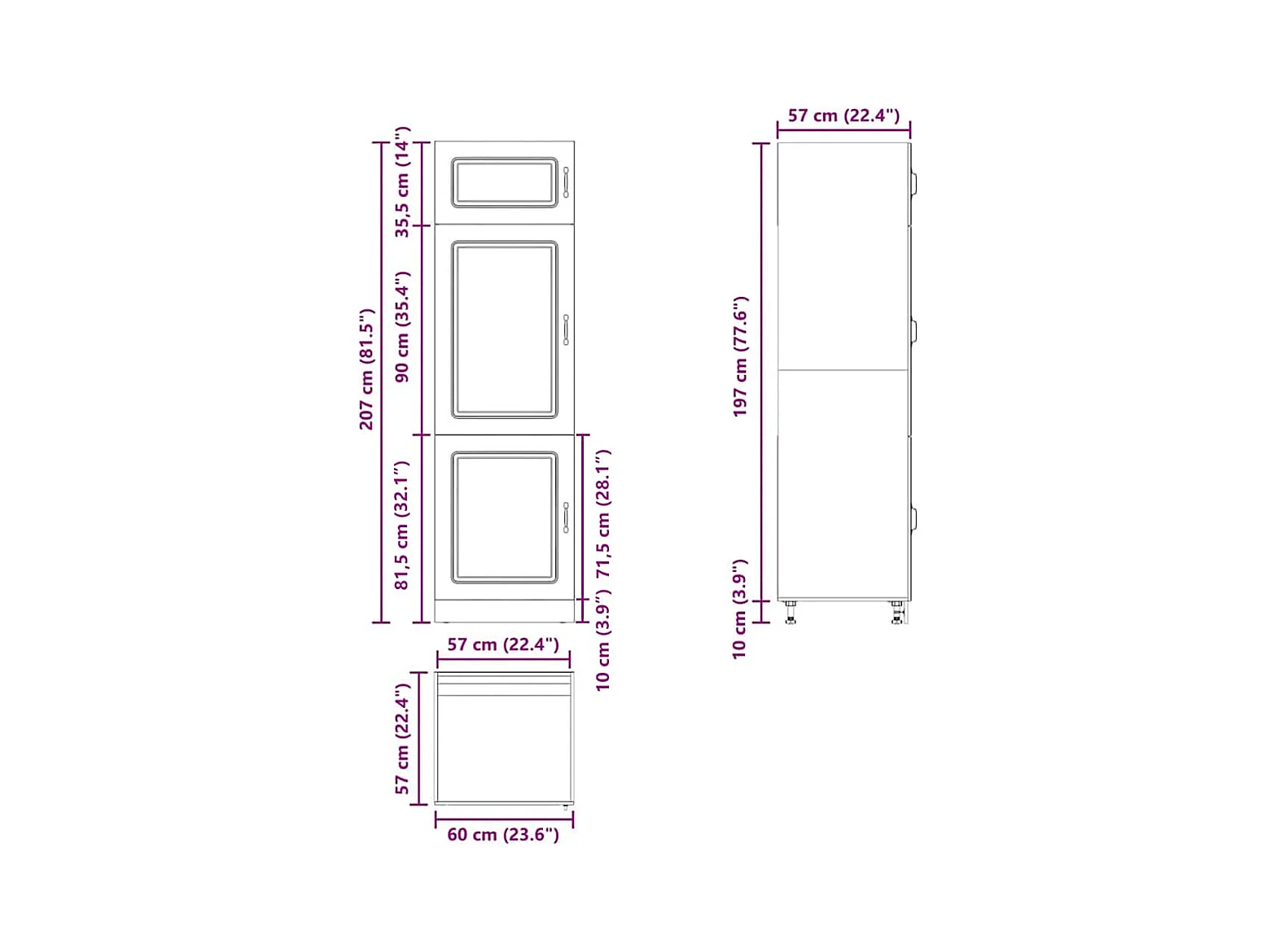 Meuble micro-ondes "Lyon" Gris Sonoma 60 x 57 x 207 cm Bois d'ingénierie