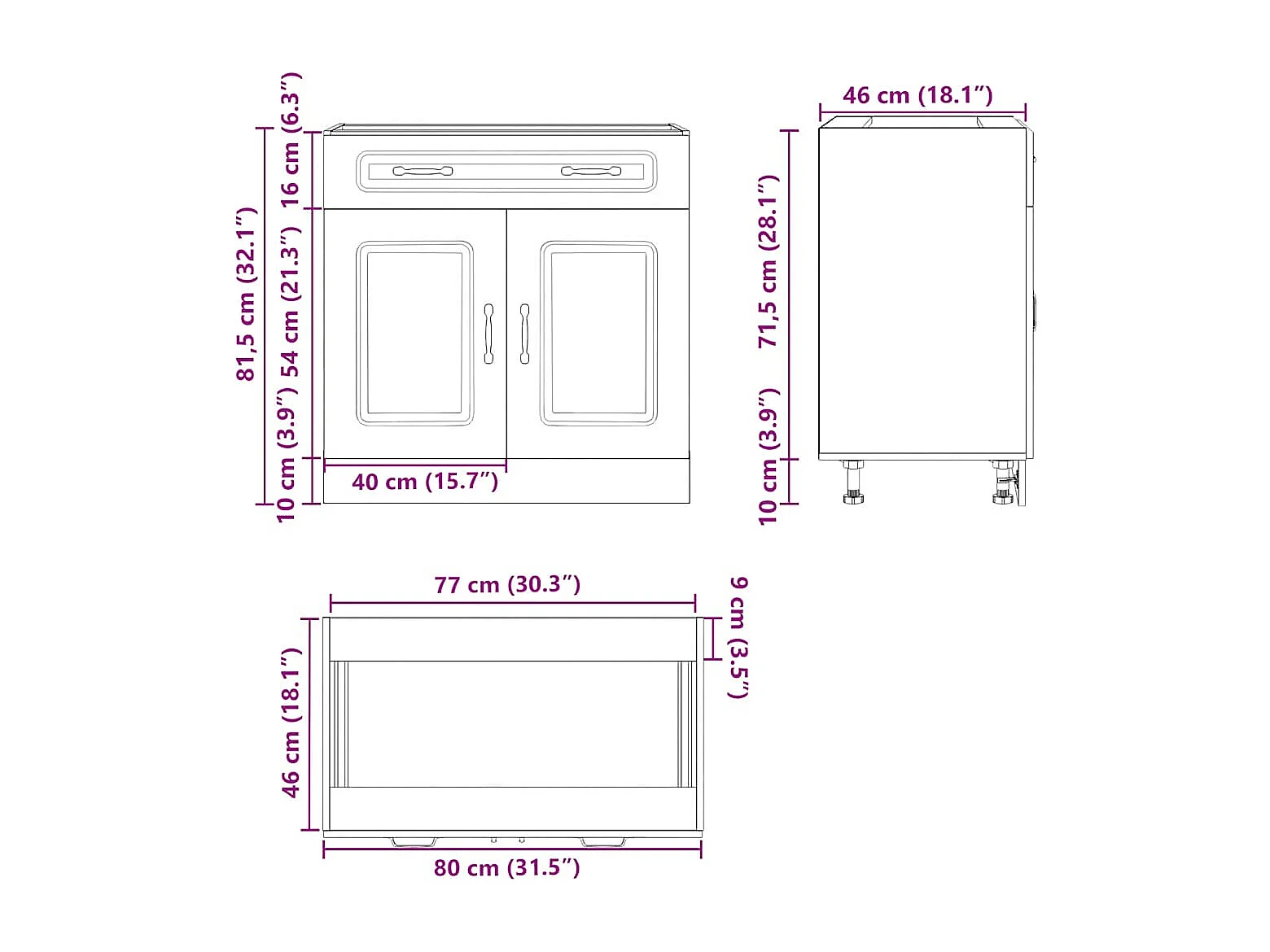 Meuble bas "Lyon" Chêne Sonoma 80 x 46 x 81,5 cm Bois d'ingénierie