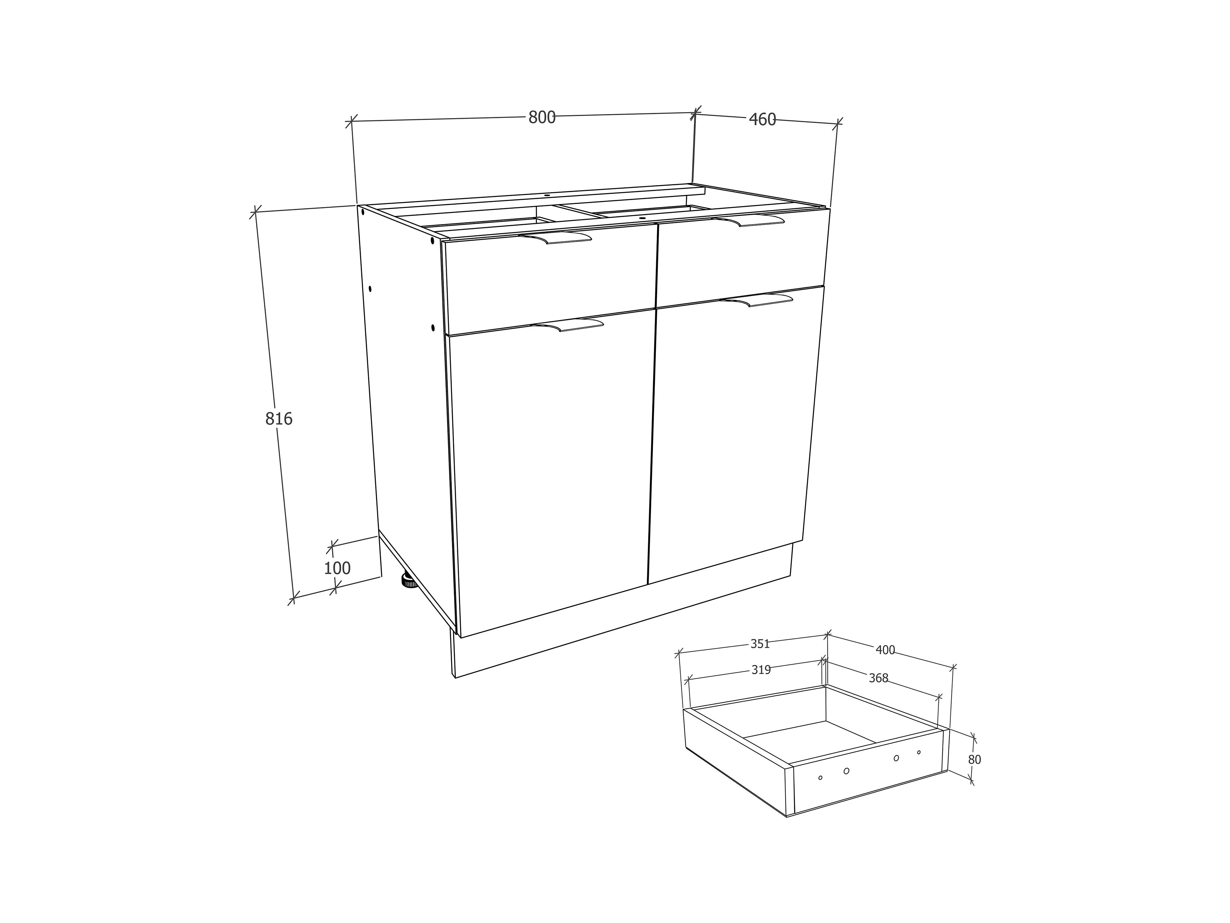 Kitchen furniture cabinet Colura White H. 82 x W. 80 x D. 46 cm