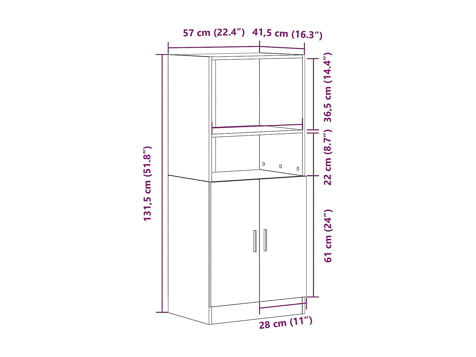 Armoire de cuisine gris béton 57x41,5x131,5 cm bois ingénierie