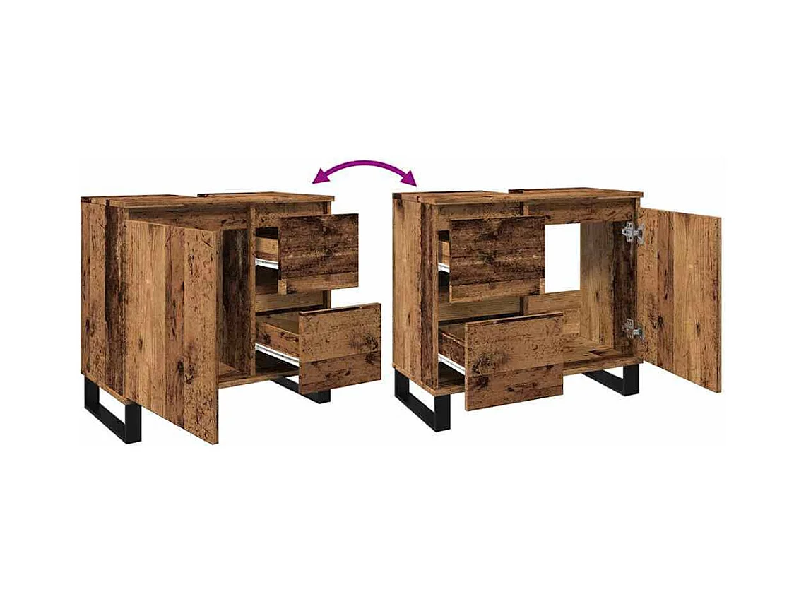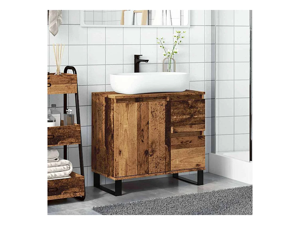 Armoire de lavabo de salle de bain vieux bois 65x33x60 cm