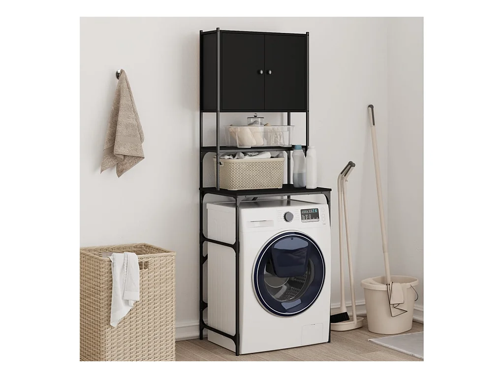 Armoire de machine à laver noir 68x48,5x194 cm FR82816