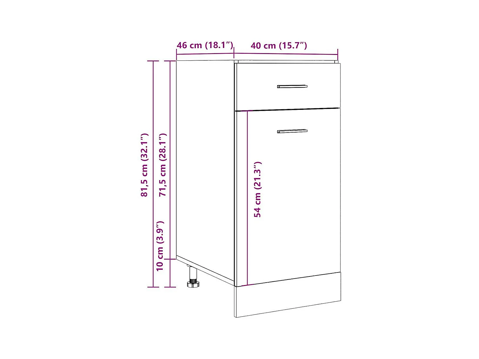 Armoire de cuisine gris béton 38x41,5x131,5 cm bois ingénierie