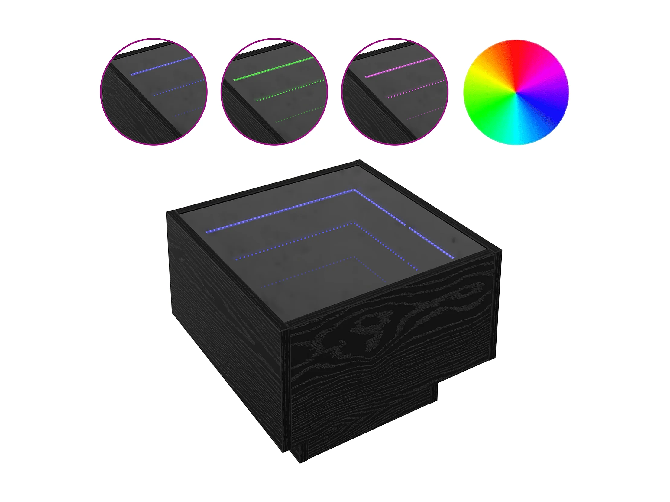 Table de nuit Noir Chêne 40x40x50 cm en bois d'ingénierie