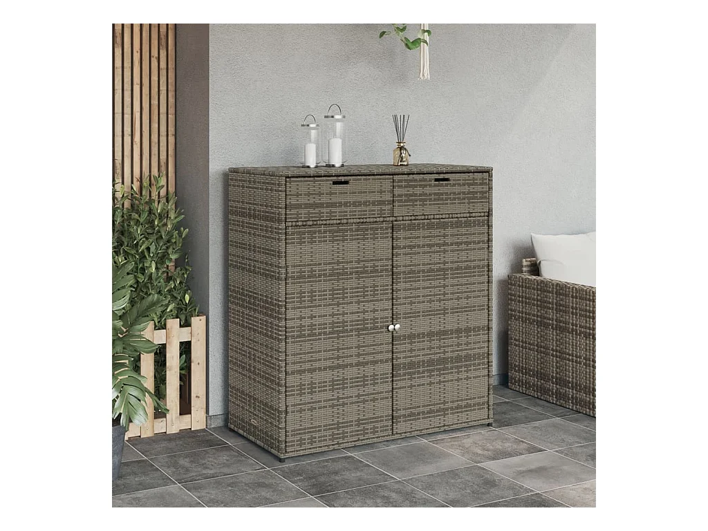 Armoire de rangement jardin gris 110x55x60,5 cm résine tressée FR98723