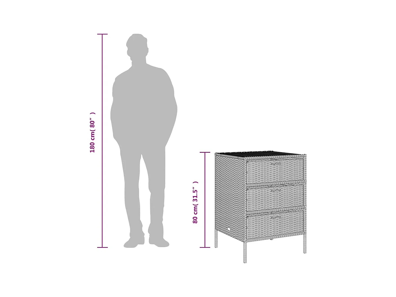 Armoire de rangement de jardin et 3 tiroirs gris résine tressée