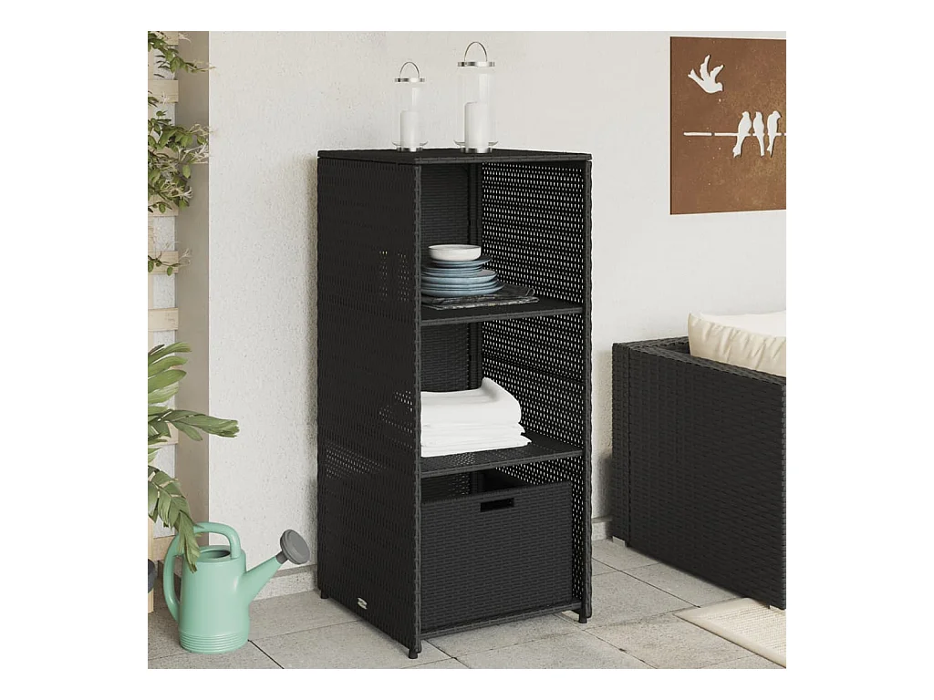 Armoire de rangement de jardin noir 50x55x115 cm résine tressée FR33338