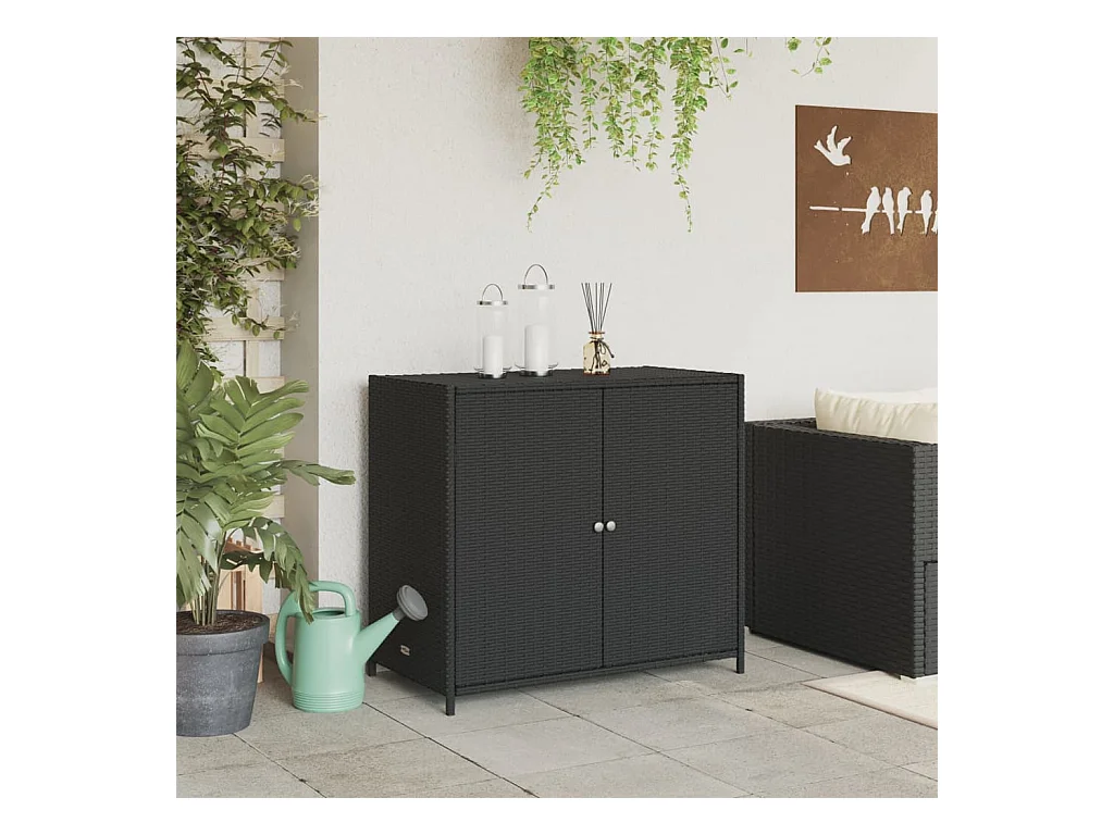 Armoire de rangement de jardin noir 83x45x76 cm résine tressée