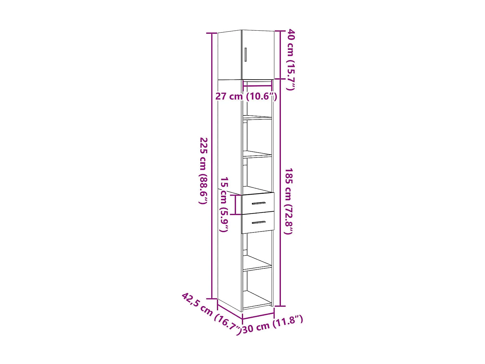 Armoire de rangement mince chêne fumé 30x42,5x225 cm