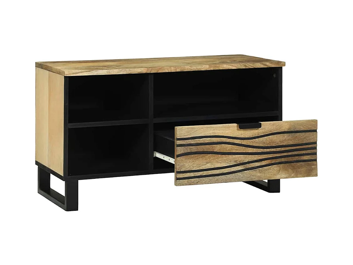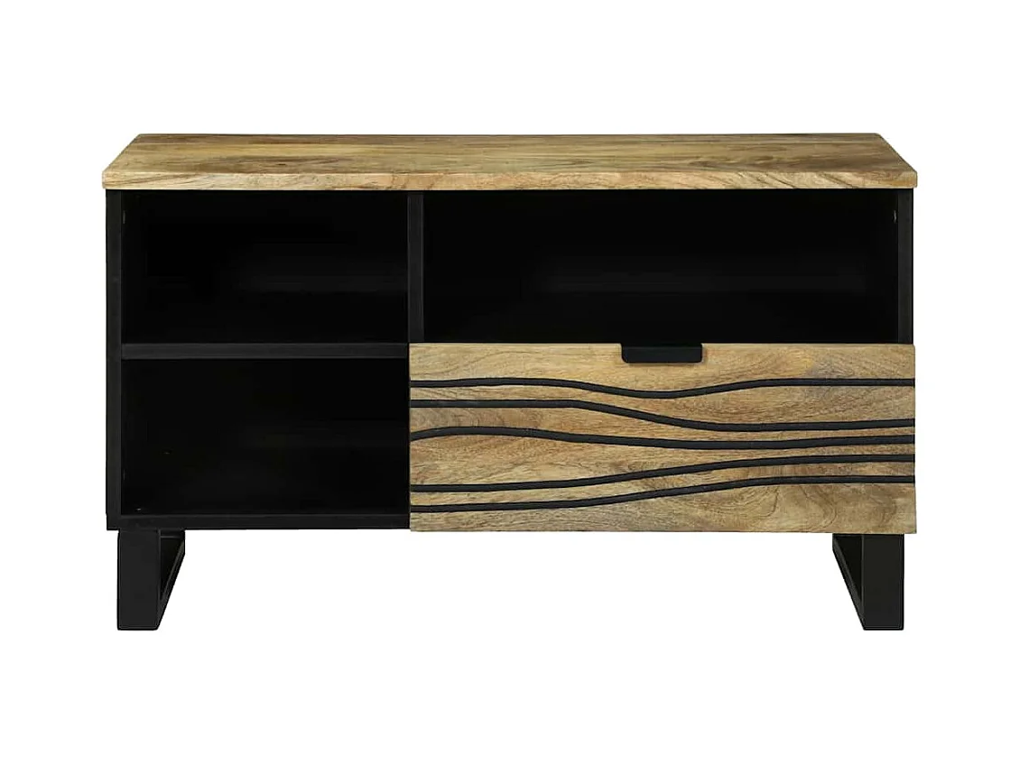 Meuble TV noir 80x33x46 cm bois massif de manguier