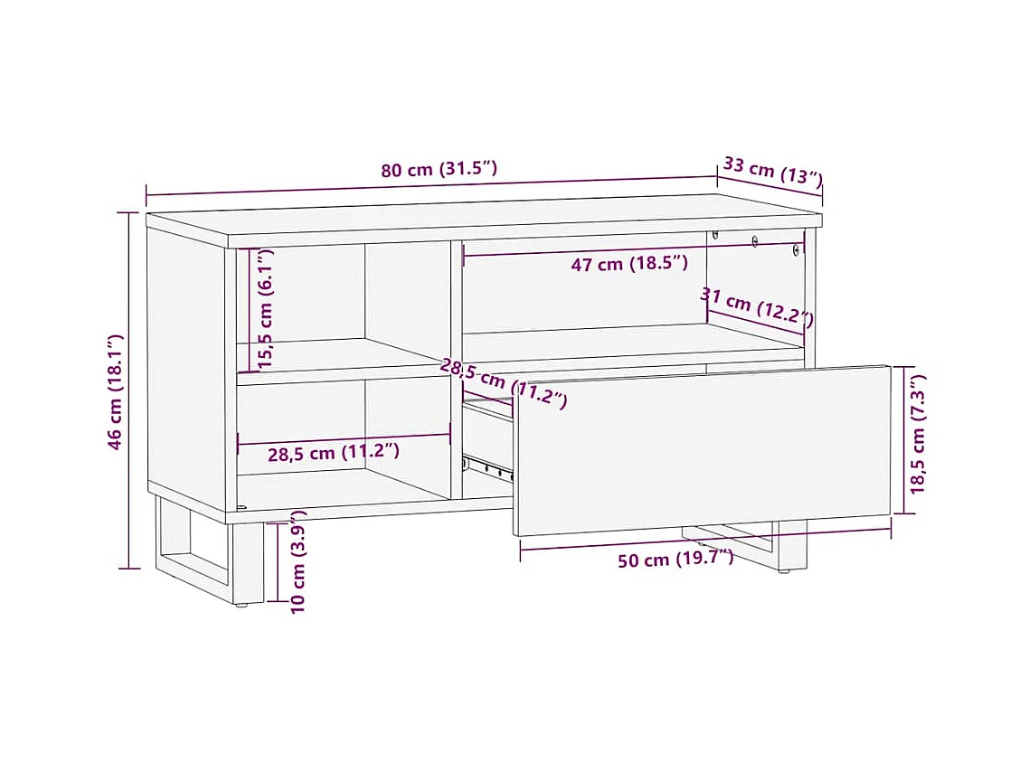 Meuble TV 80x33x46 cm bois massif de manguier