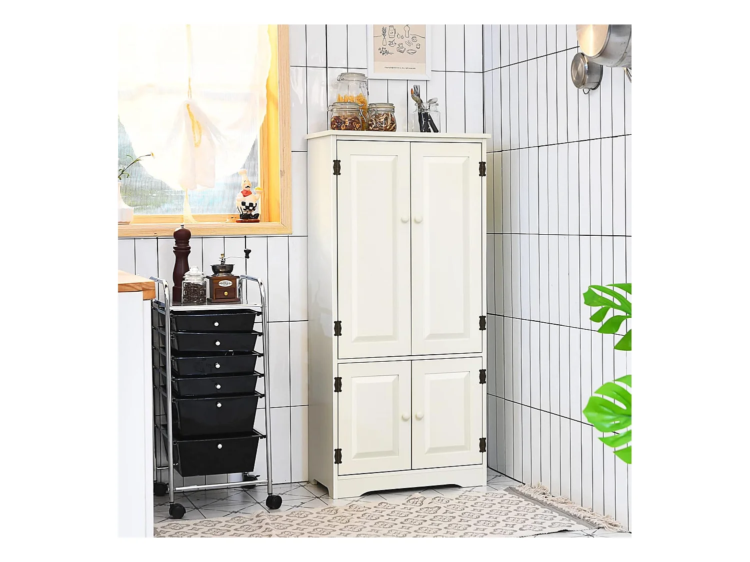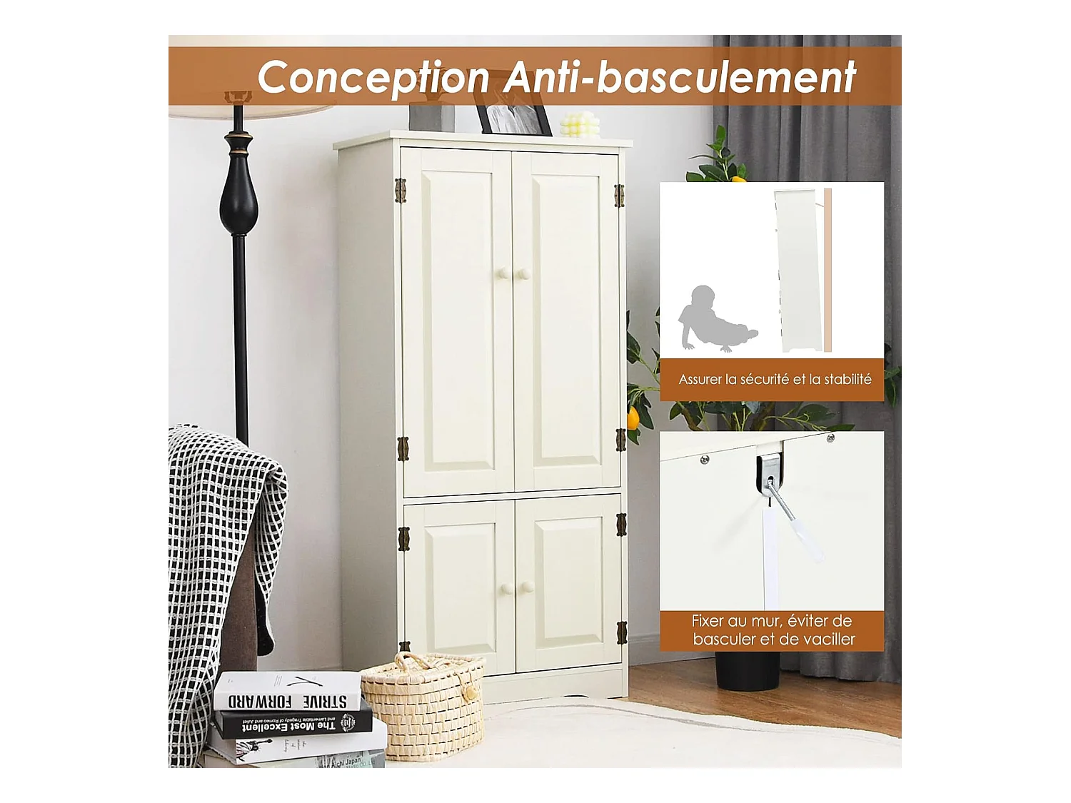 Armoire de Rangement Vintage en MDF Blanc,avec 2 Étagères Réglables sur 5 Positions et Dispositif Anti-Dumping, 58,5 x 31,5 x 123 cm, pour Salon, Chambre, Bureau
