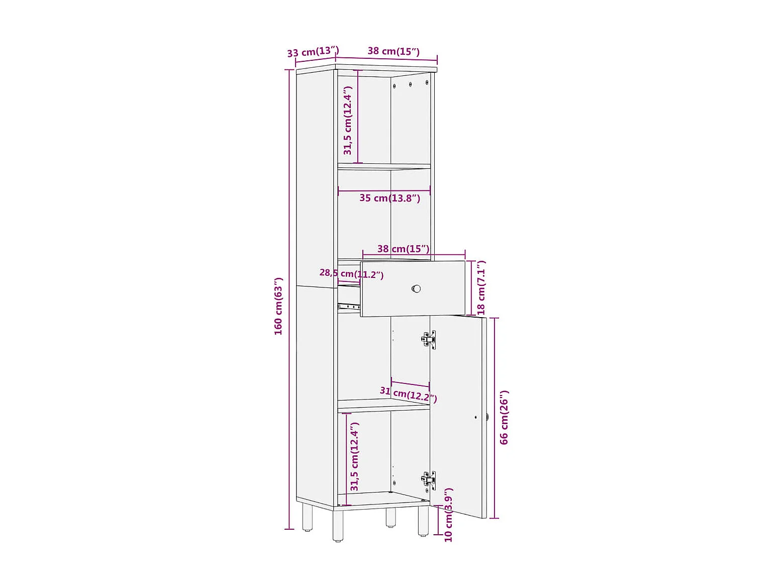 Armoire de salle de bain 38x33x160 cm bois massif de manguier