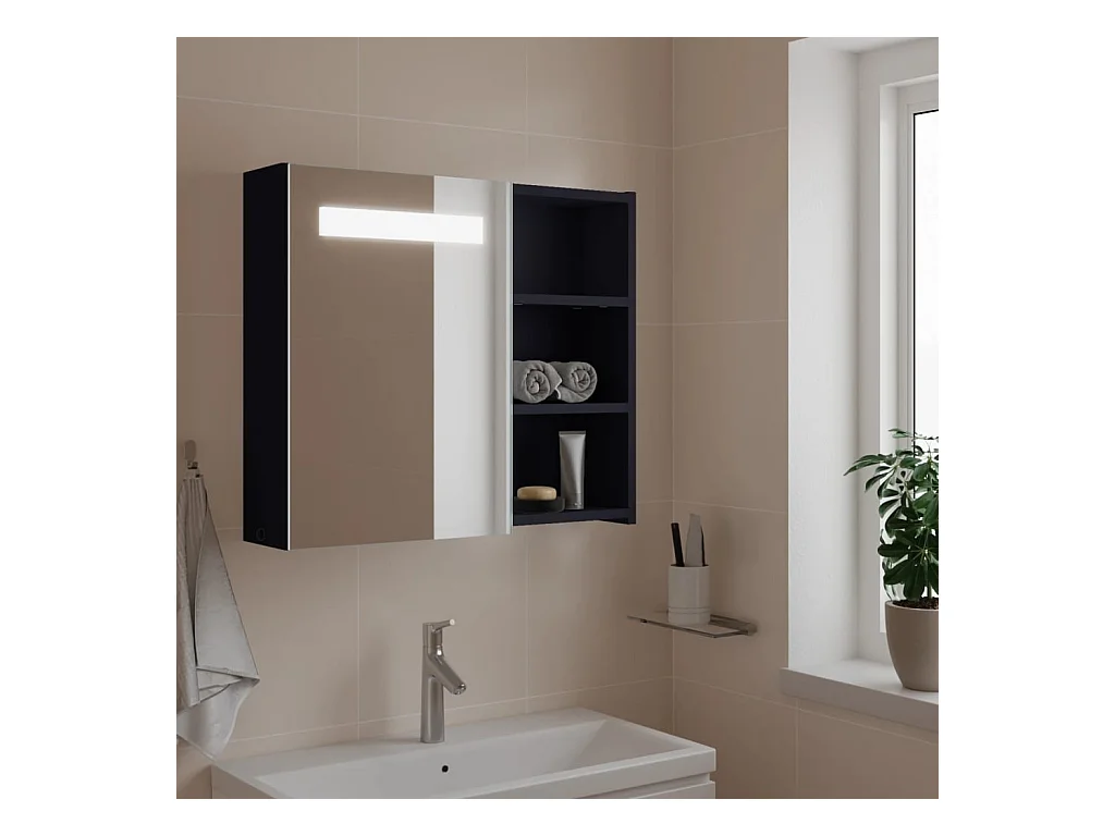 Armoire de salle de bain à miroir LED gris brillant 60x11x80 cm