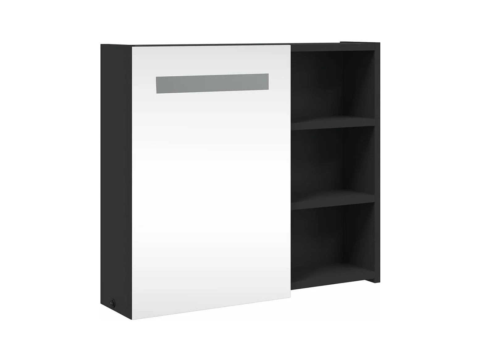 Armoire à miroir à LED noir 91x15x76,5 cm
