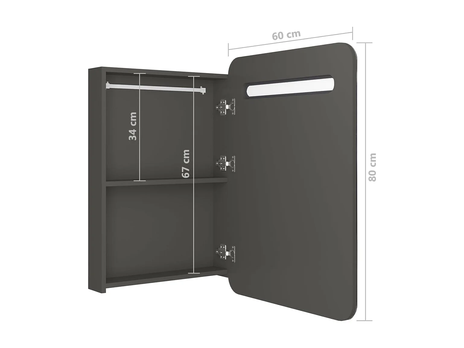 Armoire de salle de bain à miroir LED anthracite 60x11x80 cm