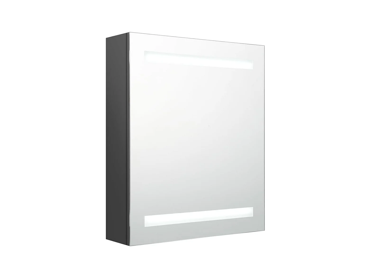 Armoire de salle de bain à miroir LED Gris brillant 50x14x60 cm