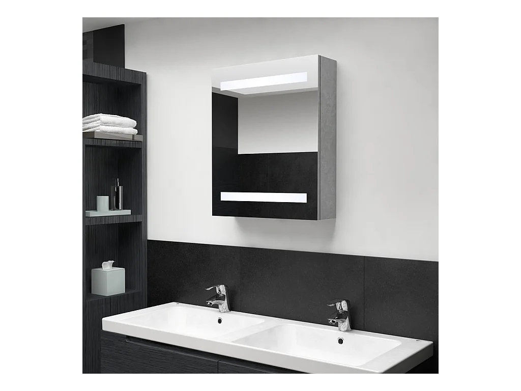 Armoire de salle de bain à miroir LED Gris béton 50x14x60 cm