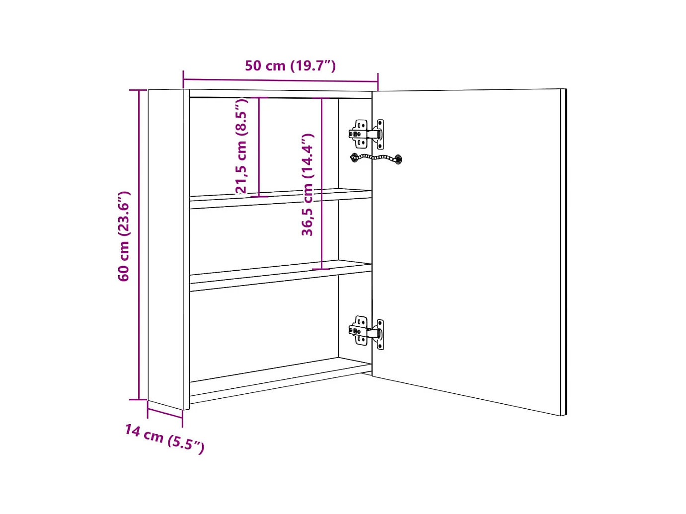 Armoire de salle de bain à miroir LED Gris brillant 50x14x60 cm