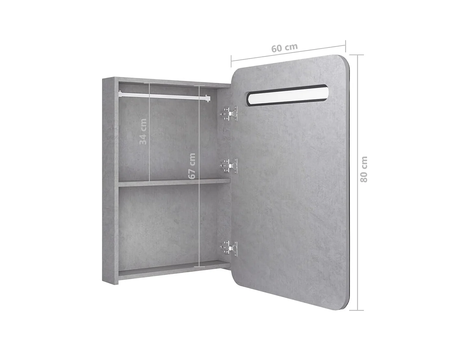 Armoire de salle de bain à miroir LED gris béton 60x11x80 cm