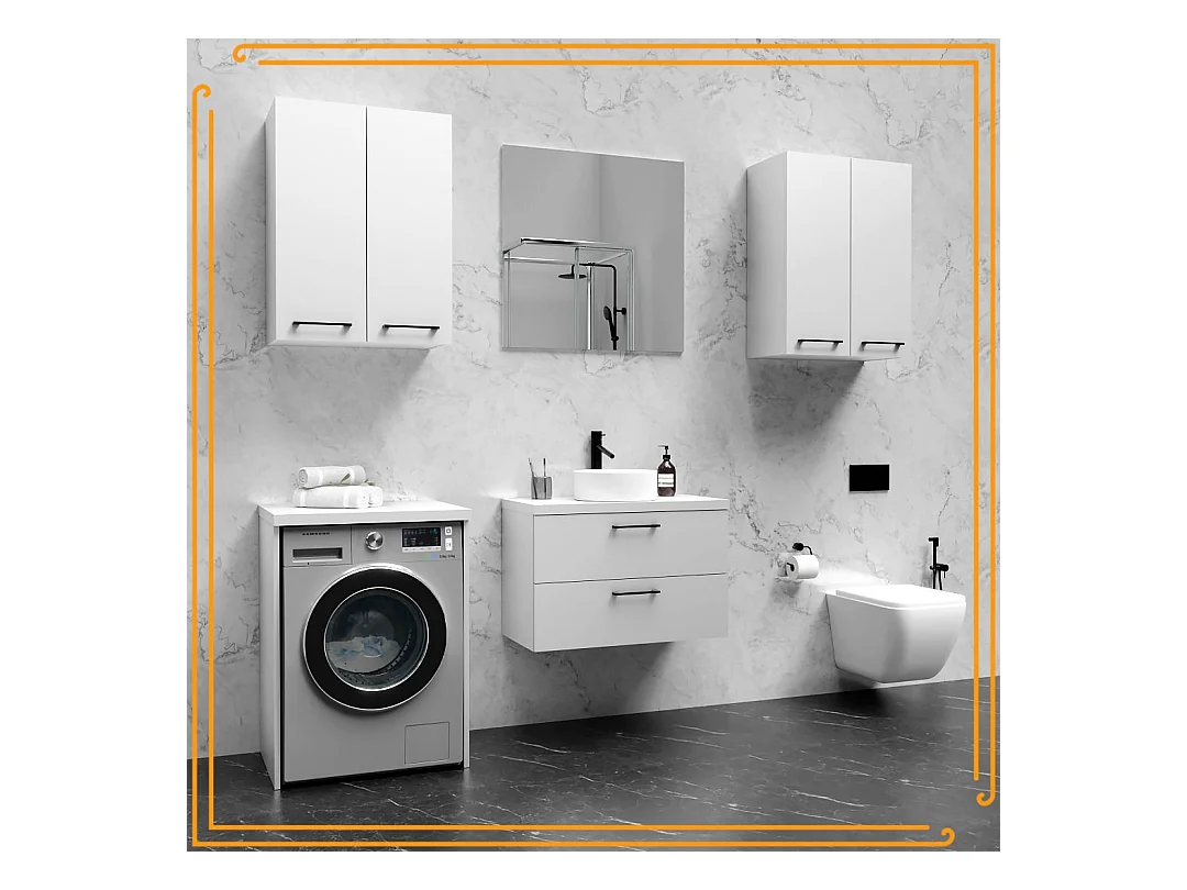 Armoire de salle de bain pour machine à laver et sèche-linge Colonne de rangement pour électroménager Blanc