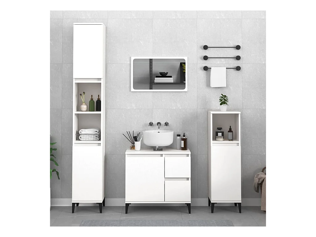 Armoire de salle de bain Blanc brillant Bois d’ingénierie