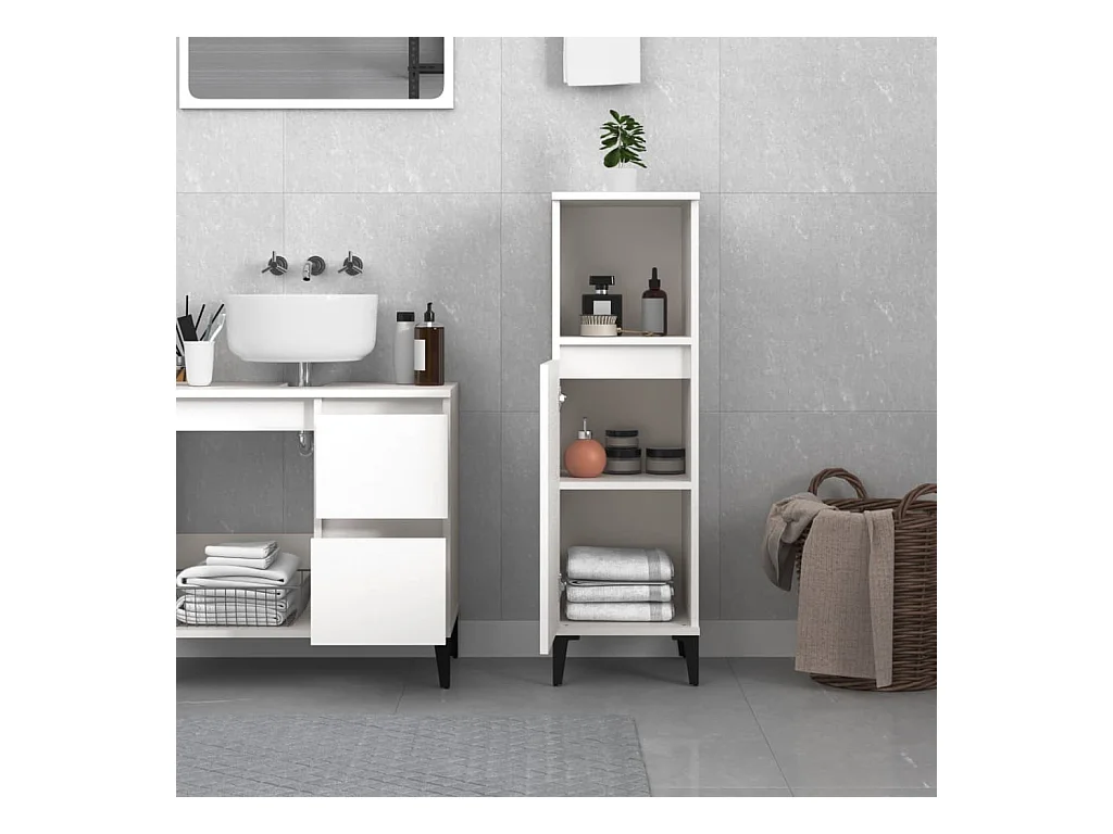 Armoire de salle de bain blanc 30x30x100 cm bois d'ingénierie