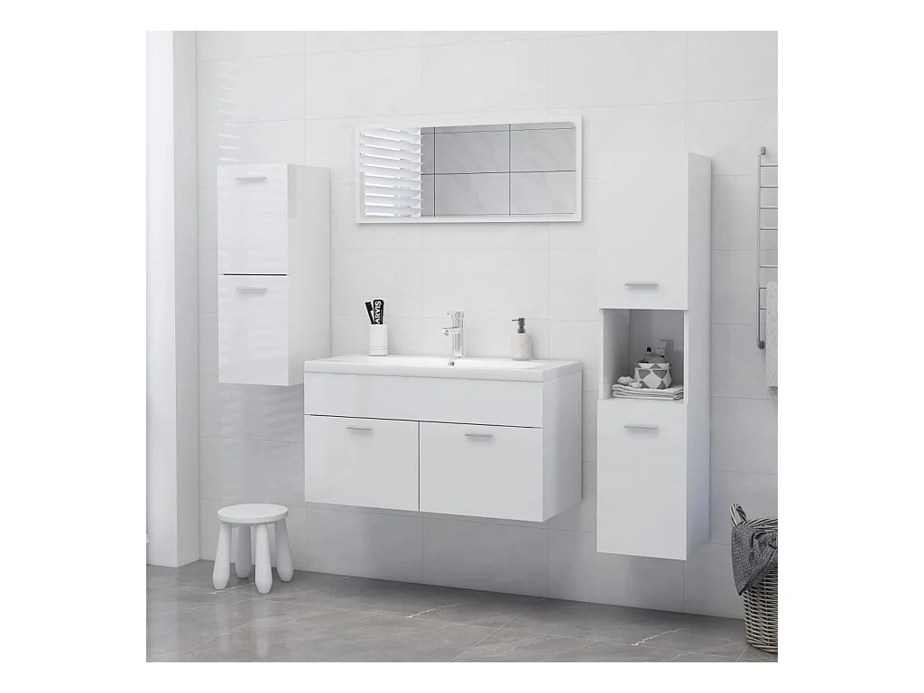 Armoire de salle de bain Blanc brillant Bois d’ingénierie