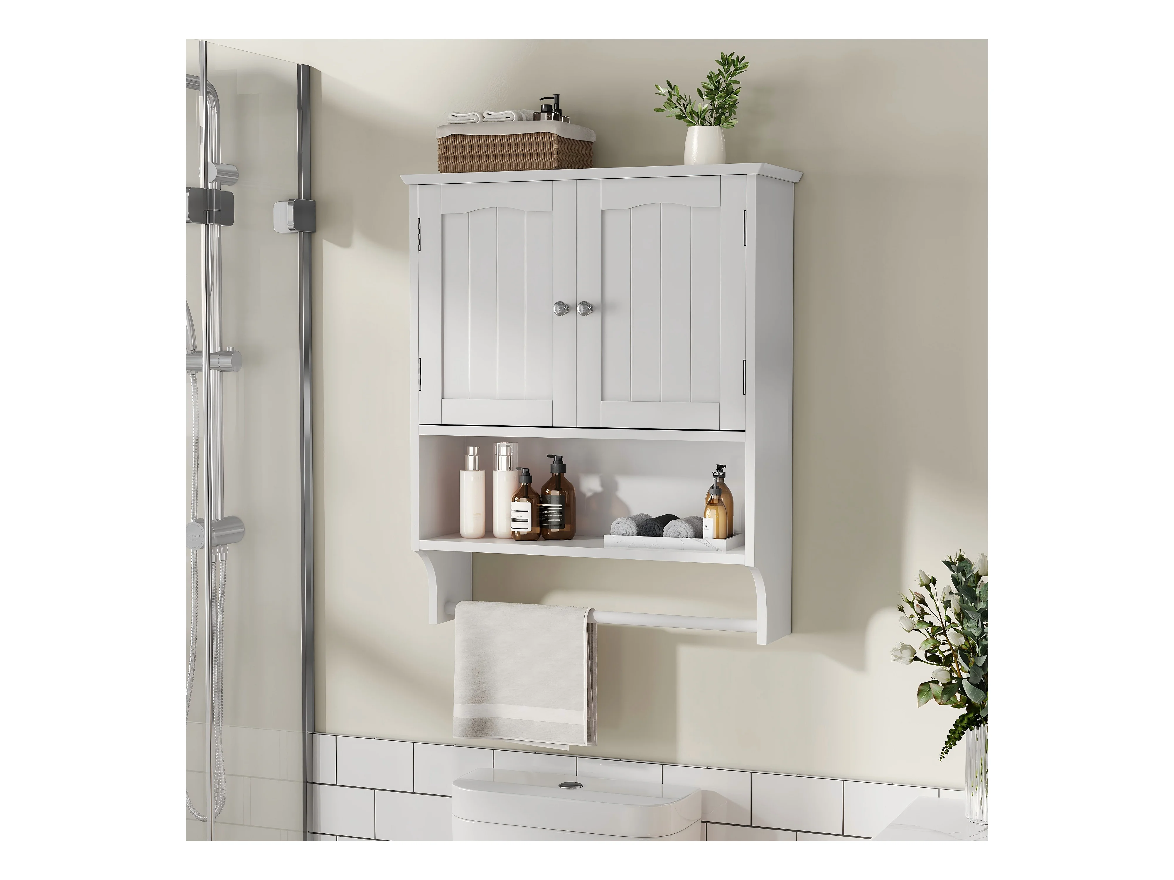 Armoire de salle de bain blanche avec porte-serviettes mural,armoire à pharmacie