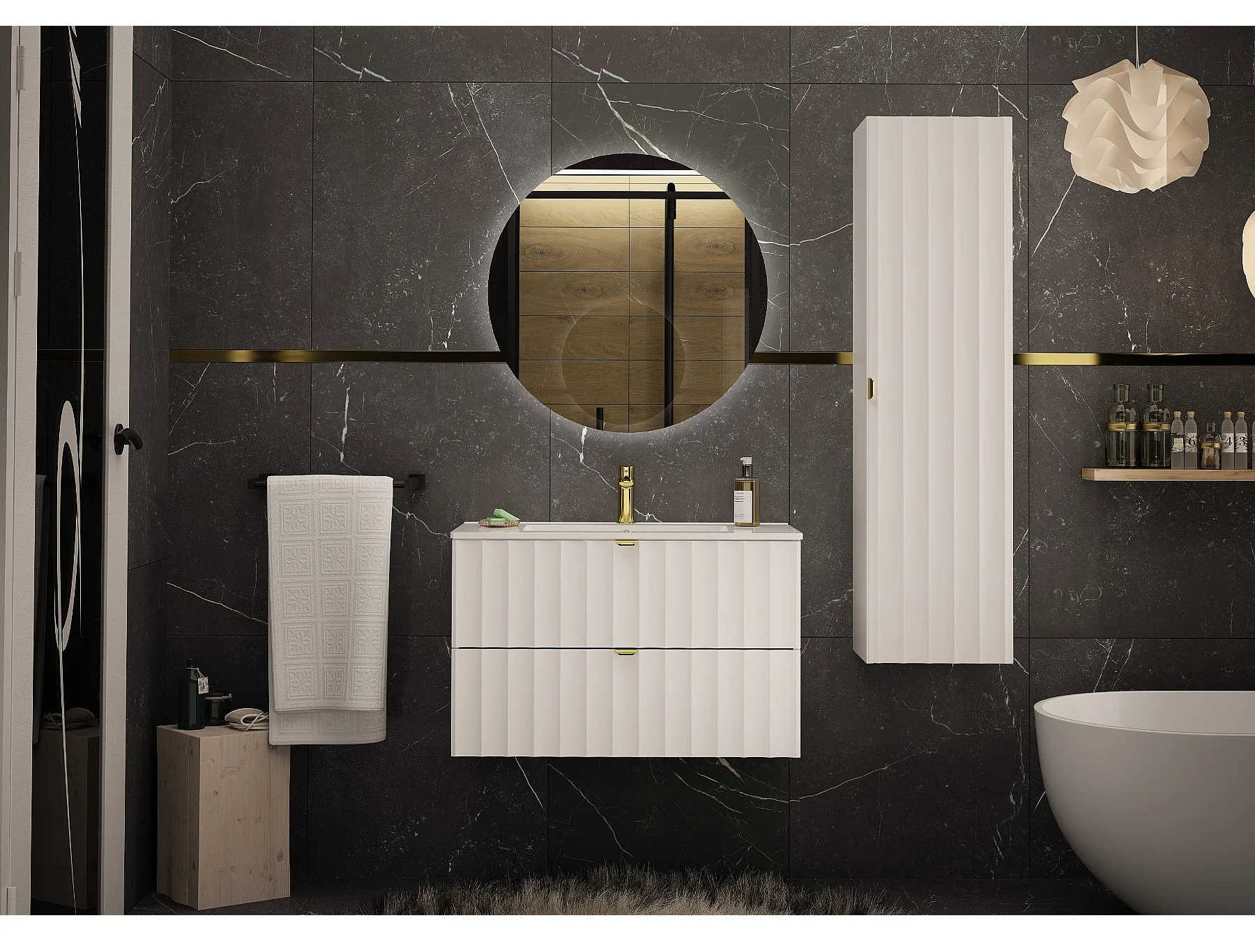Armoire de salle de bain blanche sous lavabo 80 cm Façades rainurées Arcos
