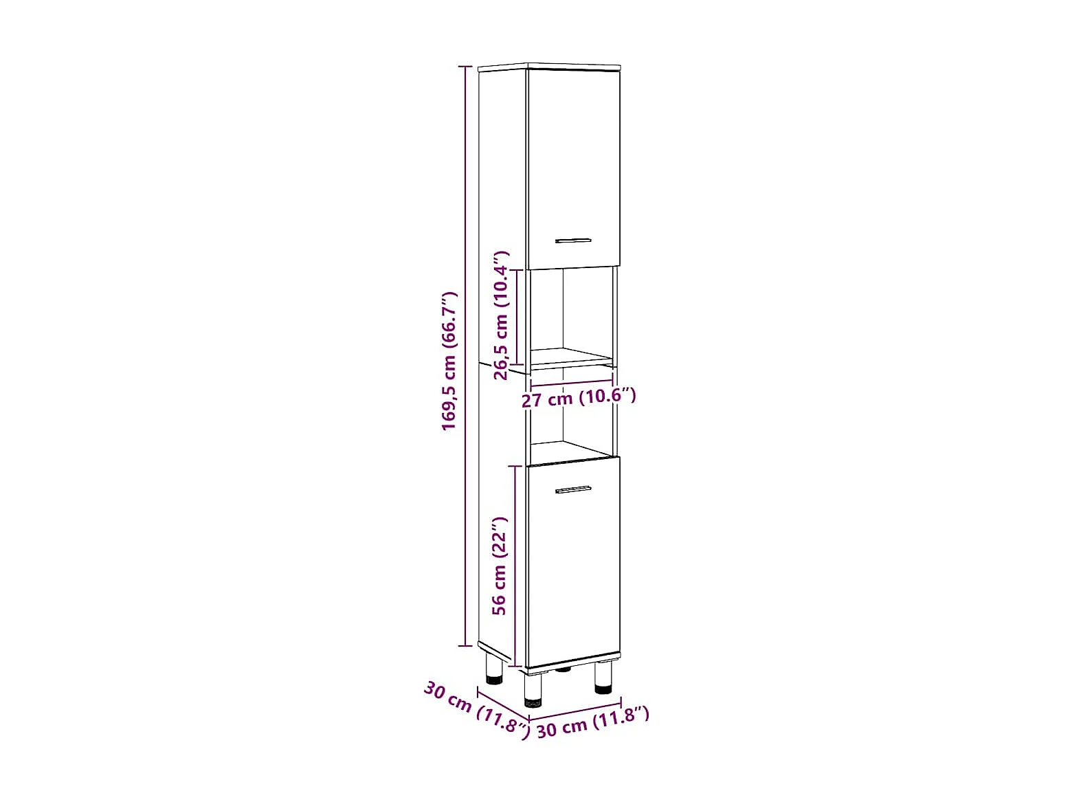 Armoire de salle de bain vieux bois 30x30x190cm bois ingénierie