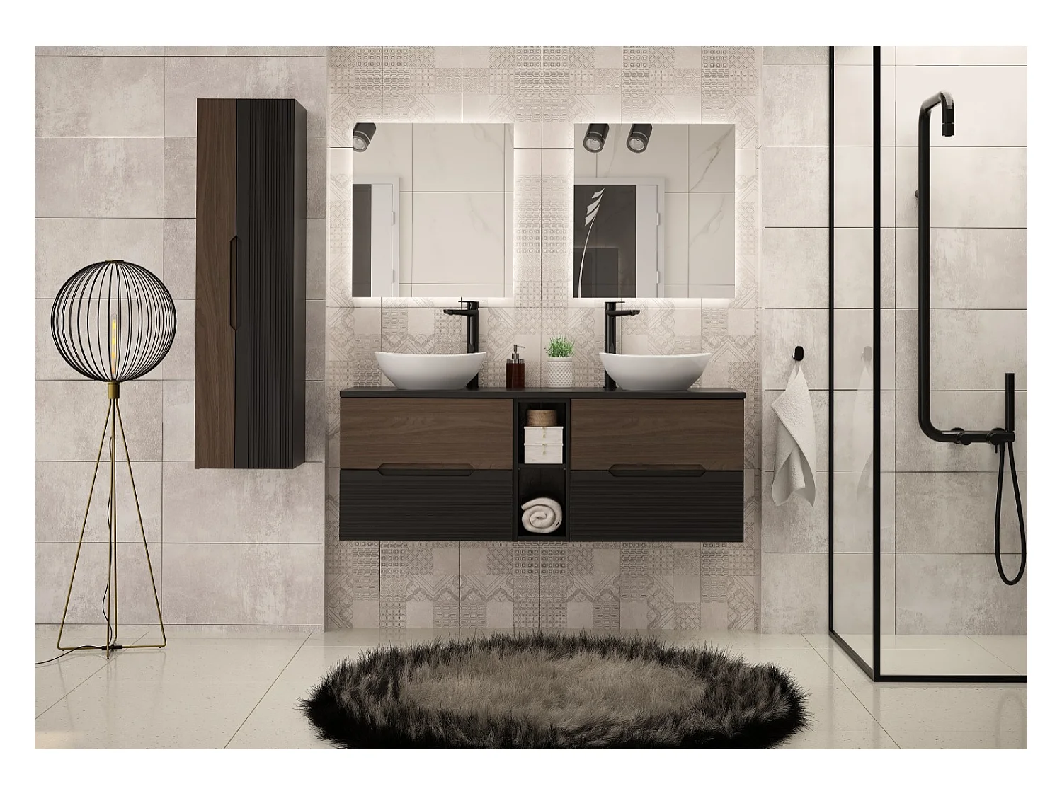 Armoire de salle de bain colonne haute noir mat / Noyer Avella