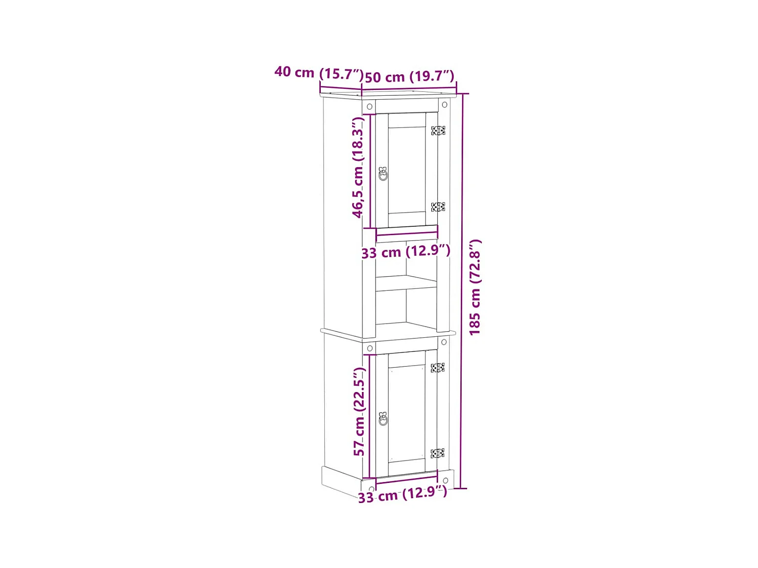Armoire de salle de bain Corona 50x40x185 cm bois de pin massif