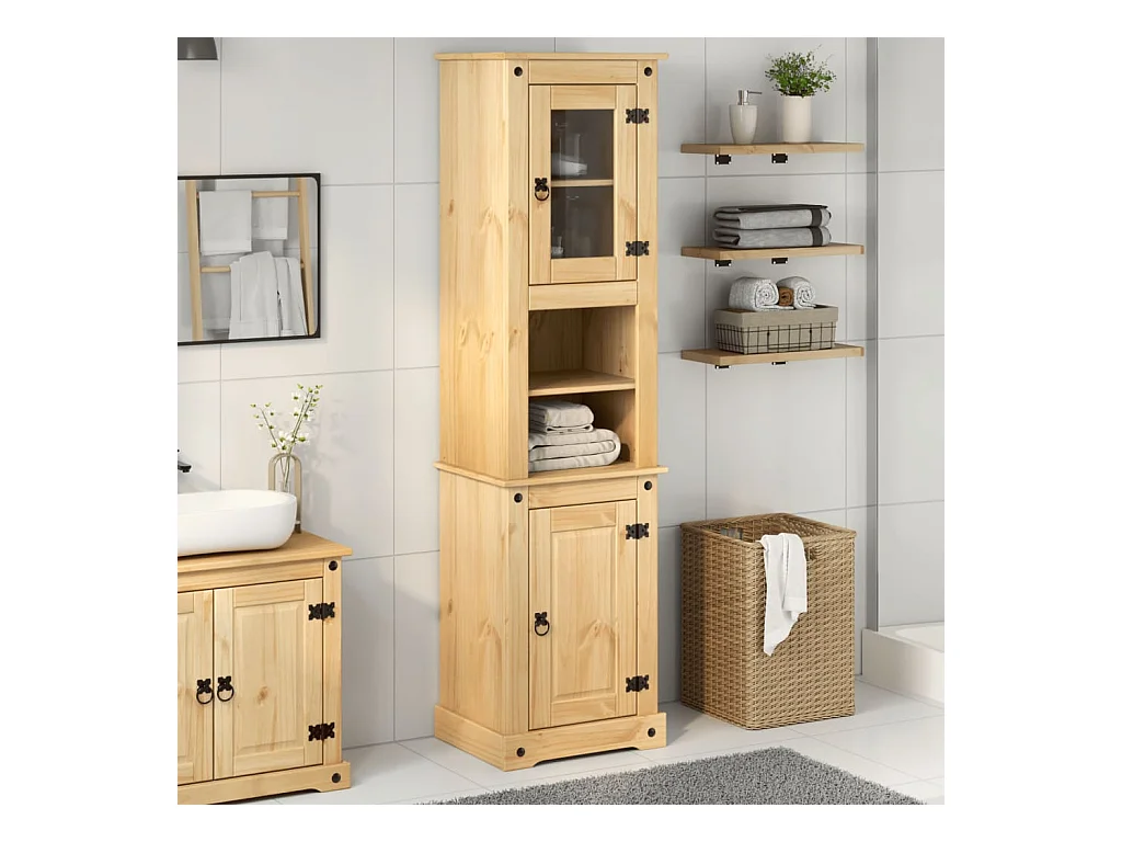 Armoire de salle de bain Corona 50x40x185 cm bois de pin massif
