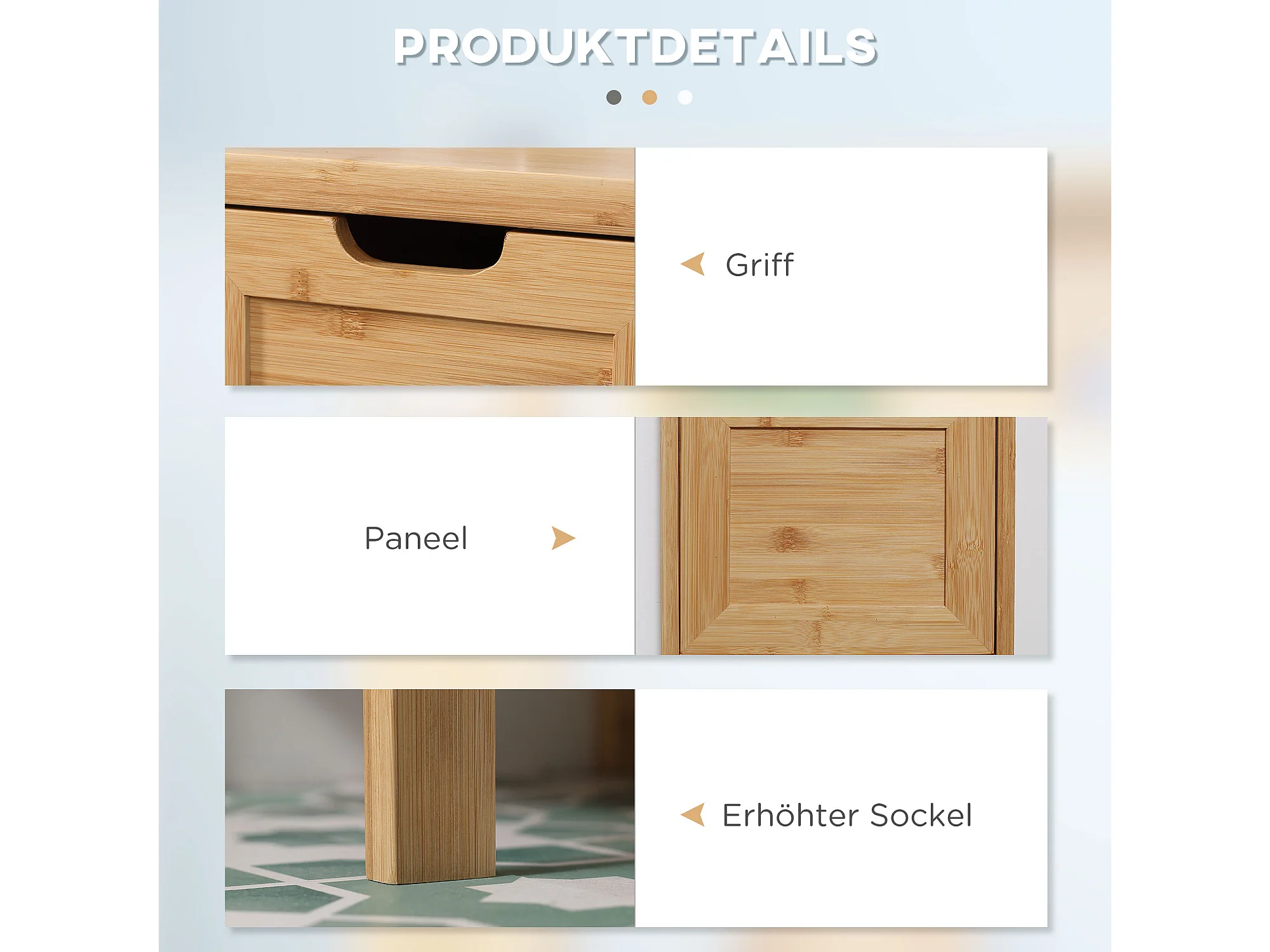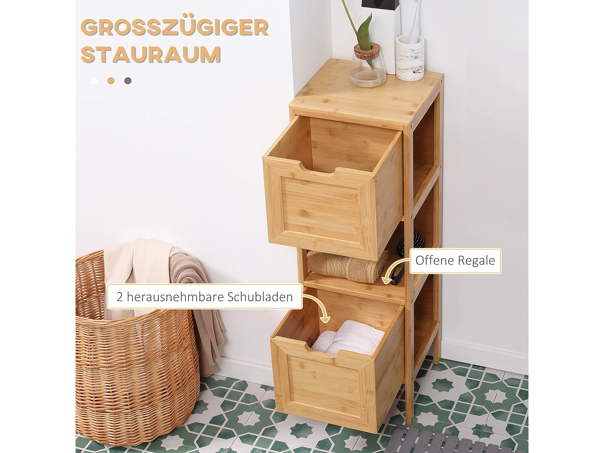 Armoire de Salle de Bain en Bambou, 2 Tiroirs, Design Campagne, Avec Système de Sécurité, Blanc, (30x30x90 cm)