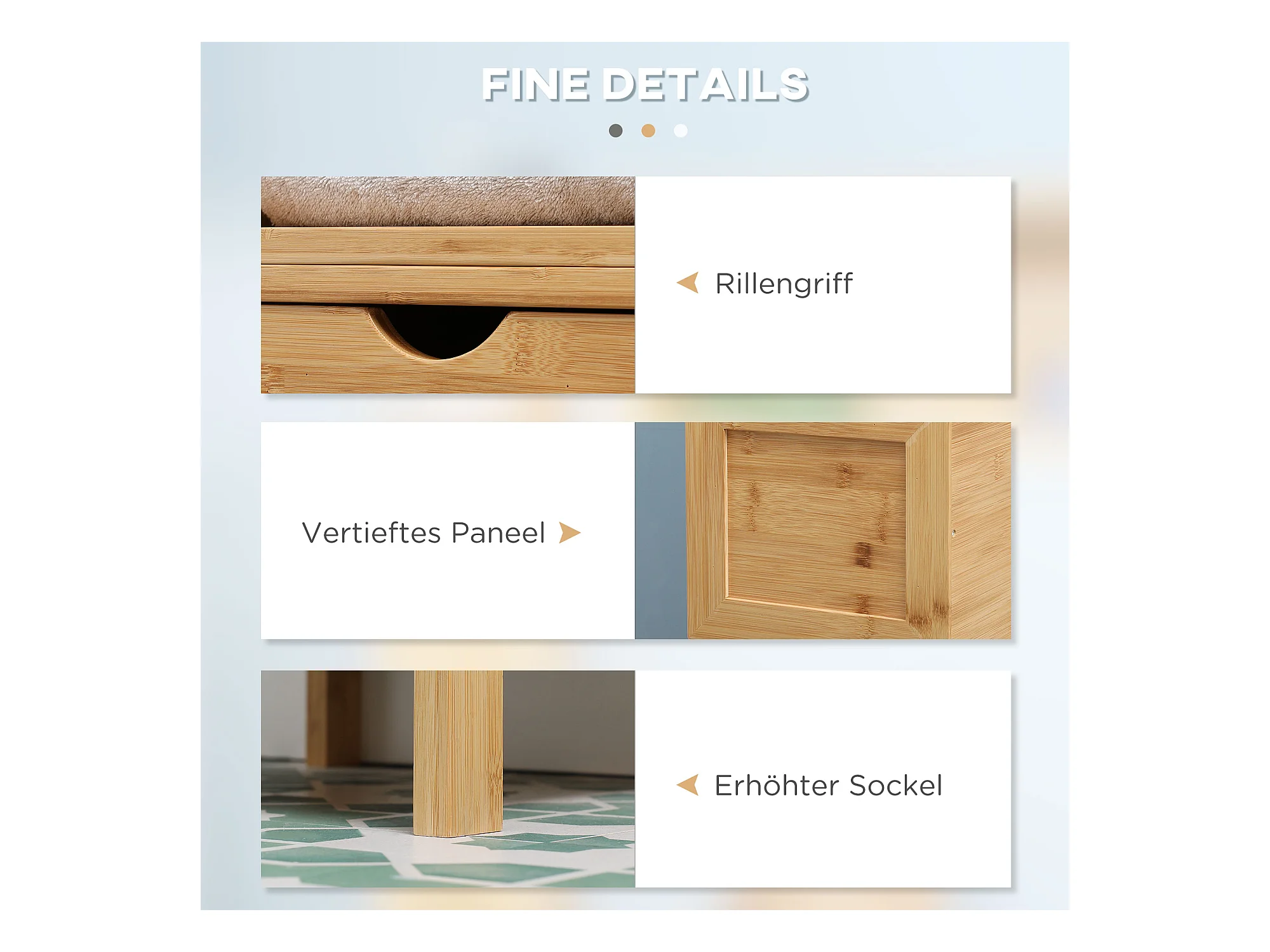 Armoire de Salle de Bain en Bambou, 2 Tiroirs, Design Campagne, Avec Système de Sécurité, Blanc, (30x30x90 cm)