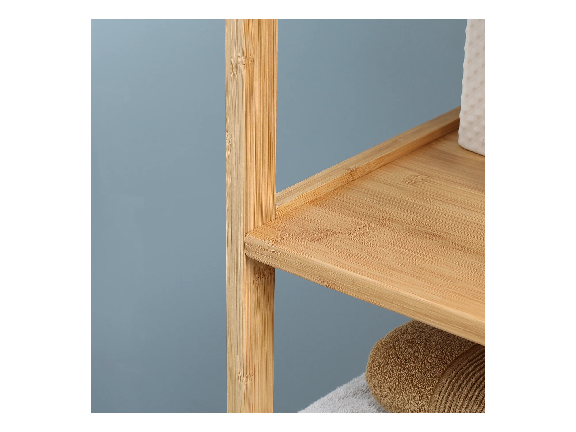 Porte-manteau en bambou avec étagères et crochets, bois naturel, stable et pratique (116x43.5x160cm)