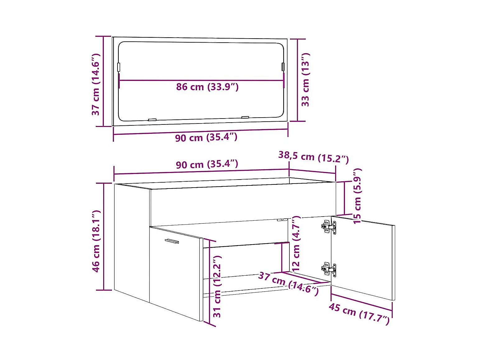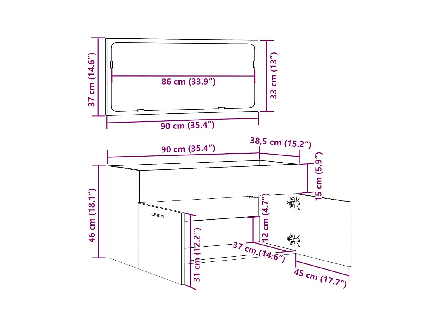 Armoire de salle de bain et miroir vieux bois bois d'ingénierie