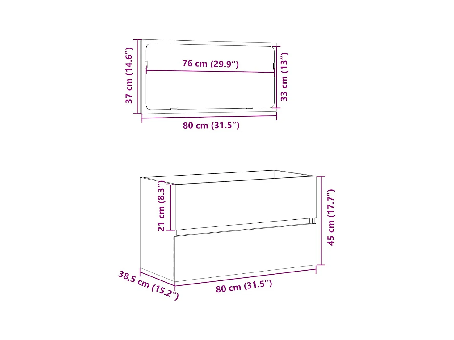 Meuble de salle de bain avec miroir chêne sonoma 80x38,5x45 cm