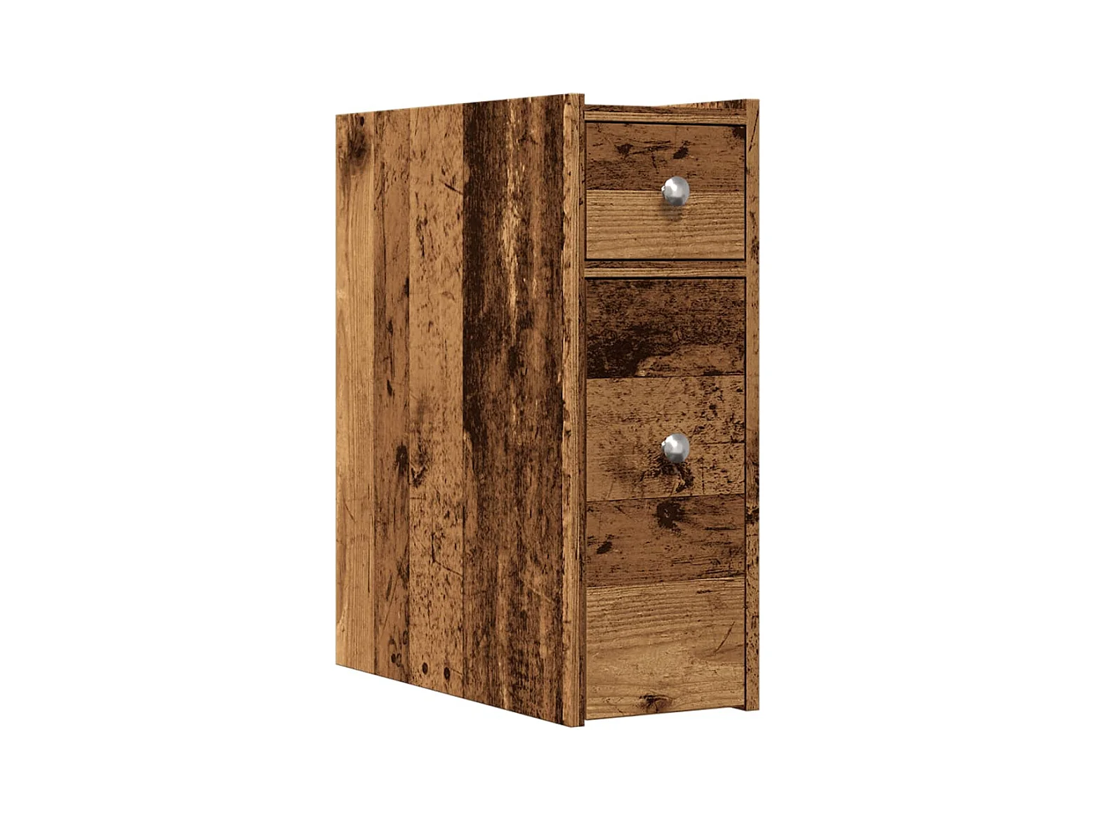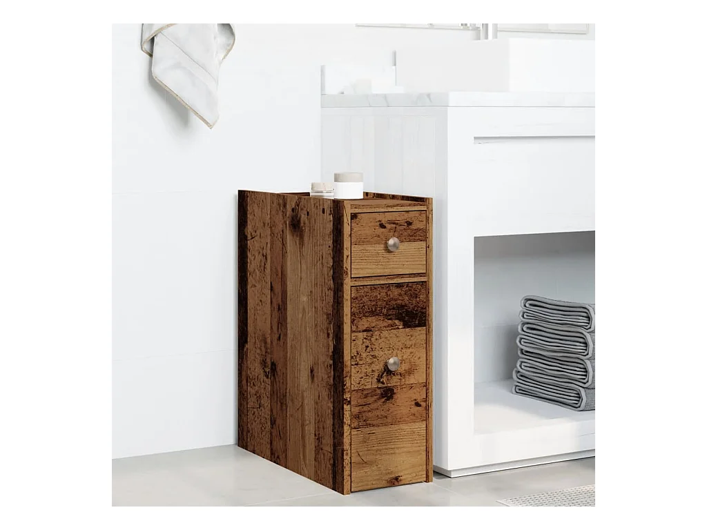 Armoire de salle de bain étroite avec roulettes vieux bois