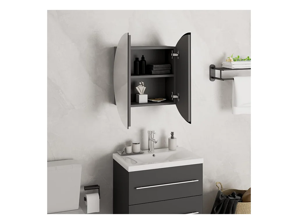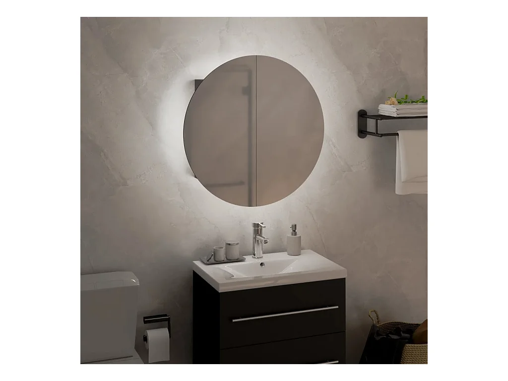 Armoire de salle de bain miroir rond et LED Gris 47x47x17,5 cm