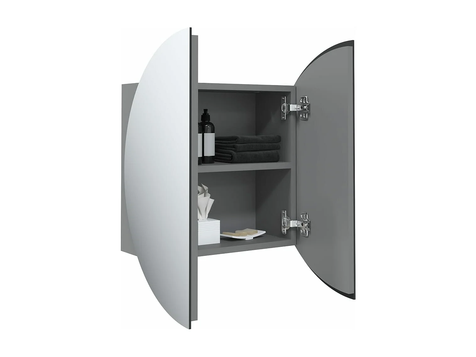 Armoire de salle de bain miroir rond et LED Gris 54x54x17,5 cm