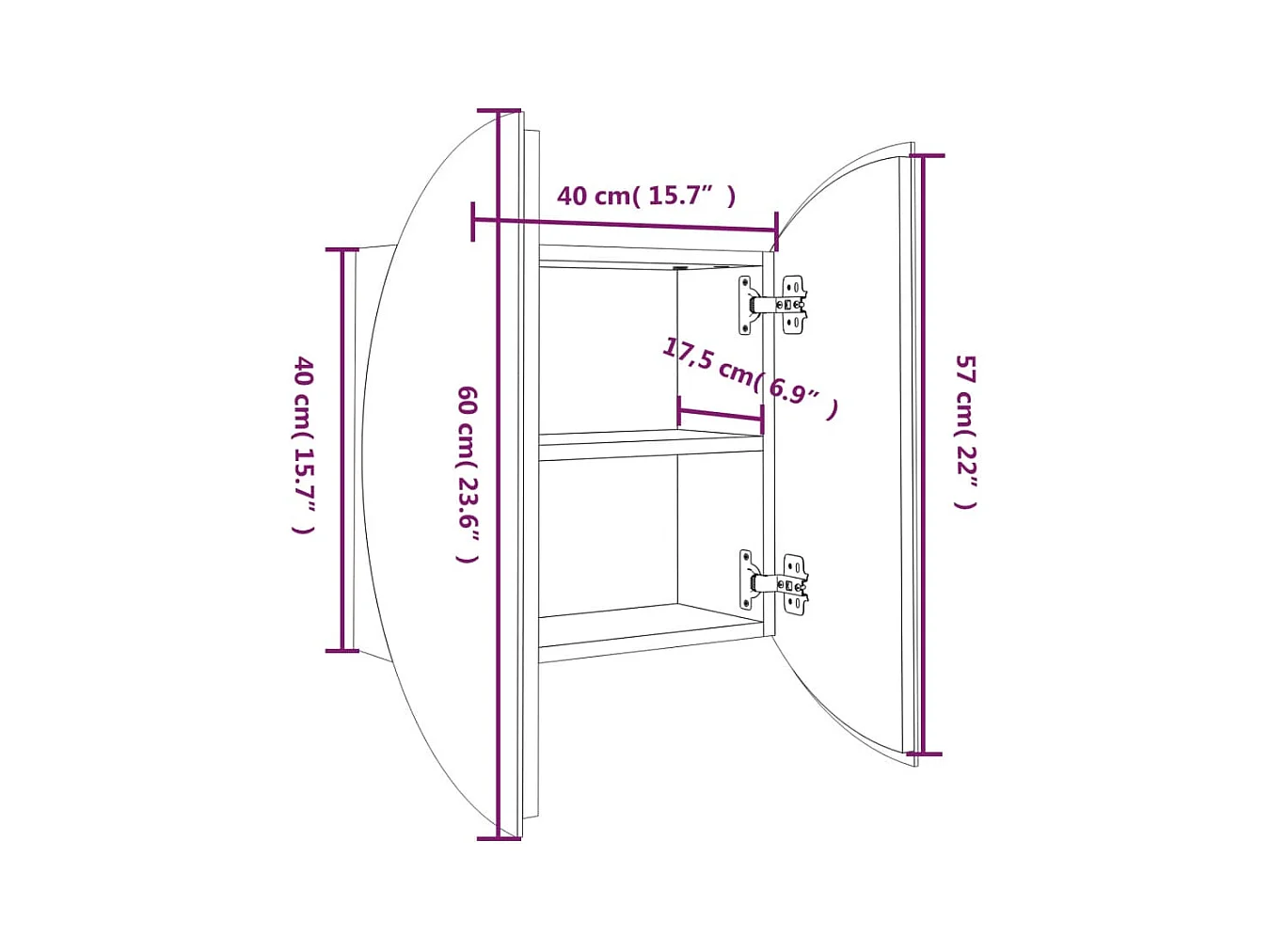 Armoire de salle de bain miroir rond et LED Gris 40x40x17,5 cm