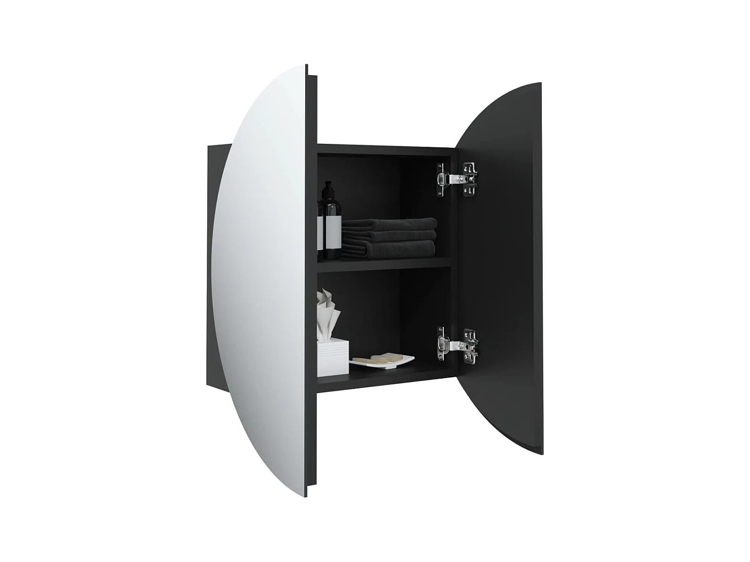 Armoire de salle de bain miroir rond et LED Noir 54x54x17,5 cm