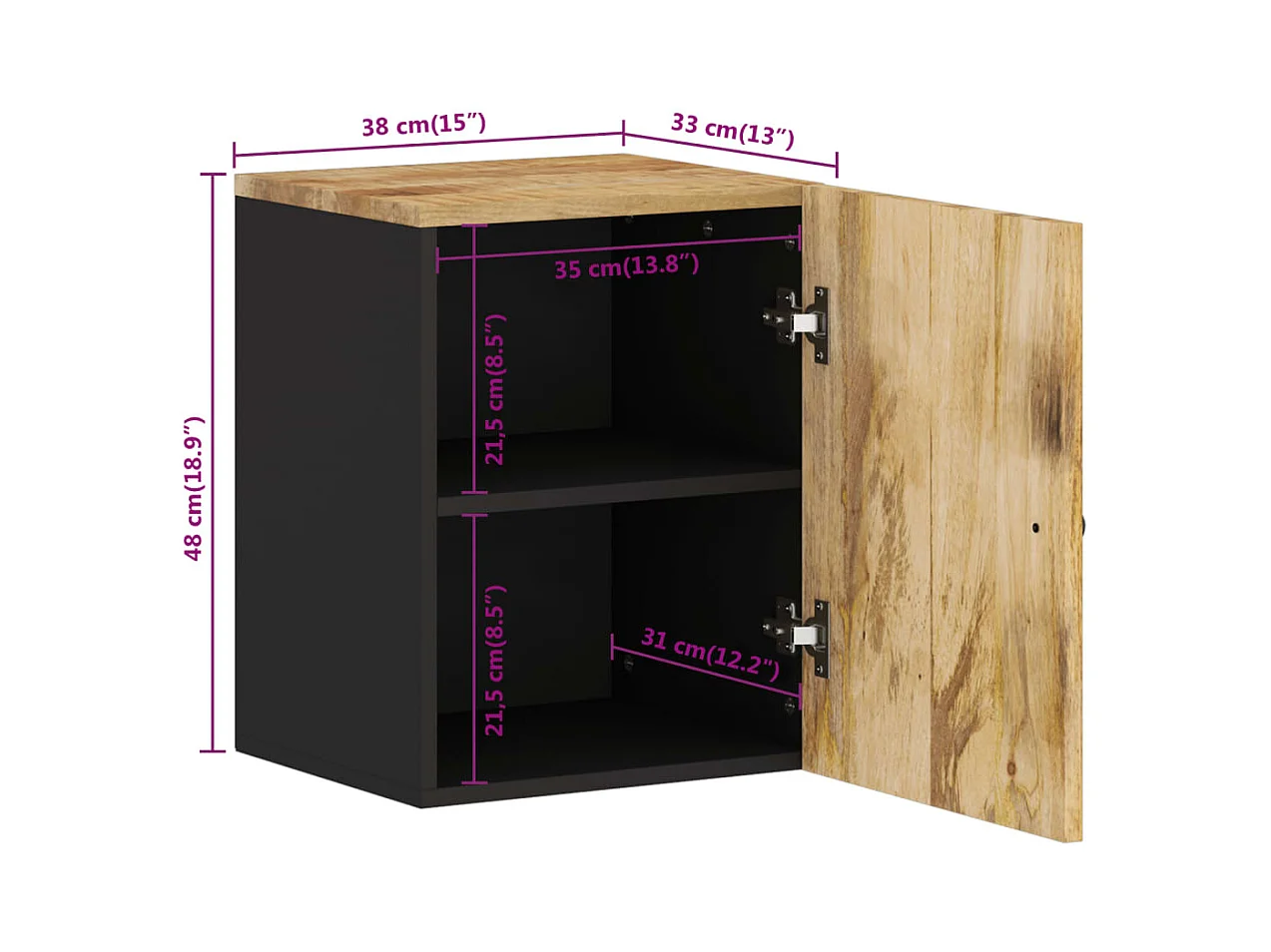 Armoire de salle de bain murale 38x33x48cm bois massif manguier