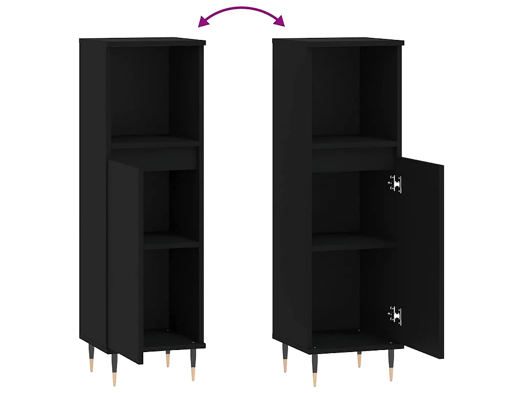 Armoire de salle de bain noir 30x30x100 cm bois d'ingénierie